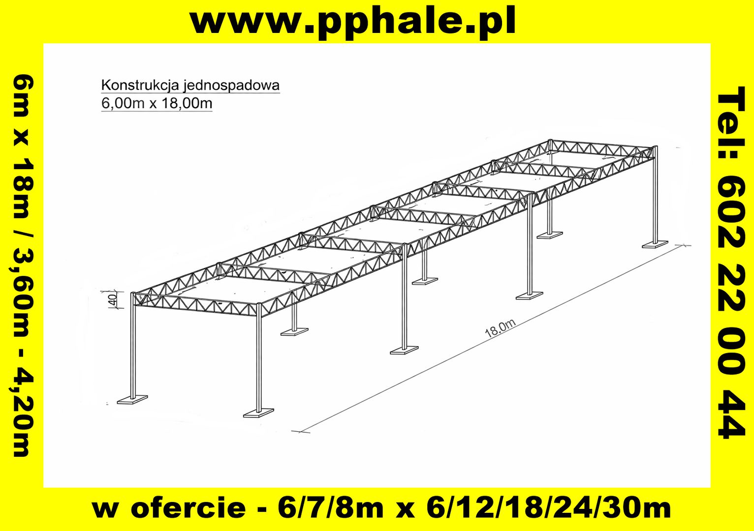 Konstrukcja Stalowa 6m x 18m - Wiata Hala Magazyn Carport - Nowa i Solidna